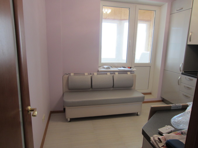 Как лучше поставить диванчик на кухне...опять меня короб смущает!?