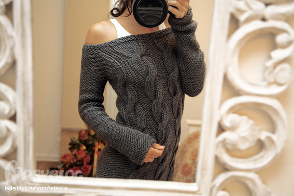 Я все не довяжу(( тоже получается толстый, так как вязка у меня плотная, не так давно вяжу.. Вижу, что кос у меня уже больше, чем на модели на картинке.. Не мерила, но вроде ниче так выходит, могу ошибаться. Осталось сантиметров 10 туловище, потом рукава)) А покажите свой результат)))) очень интересно! Ведь я по тому же описанию вяжу ))