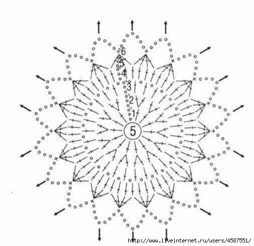 я крайний ряд мотивов вязала крайние углы не по 8 петель а по 12 чтоб типа квадрата получилось, и делала 16 арок а не 18 как на схеме но не везде пока дошло что надо изменить уже большую часть связала