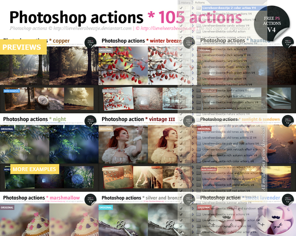 Я после недавнего урока Киселёва пересмотрела своё отношение к ним - порой они очень помогают. А тут сегодня на девианте автор экшена из урока выложила все свои экшены в одном паке - целых 105 штук!