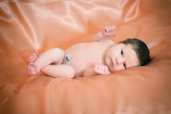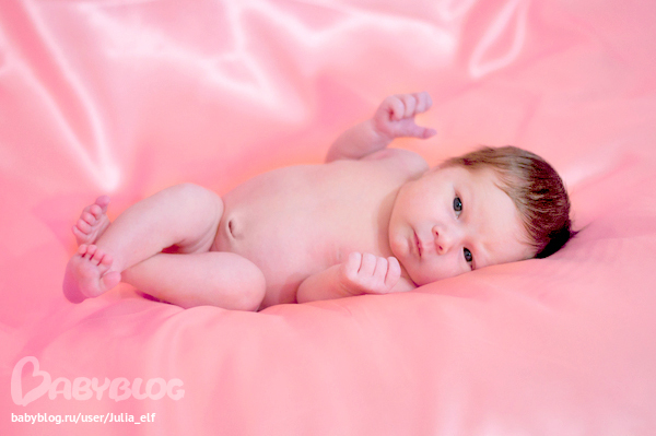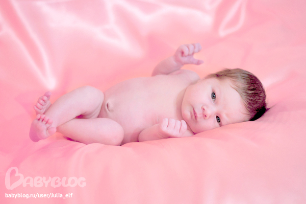 И, Лен, это лично моё мнение, но я бы не стала снимать младенца на атласе (или что это?))). Он кажетс холодным, да и блики эти лишние.. Лучше на мягком-тёплом:) ну, это ИМХО сугубо)