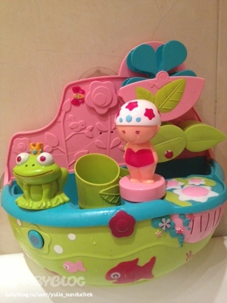у на вот такая игрушка есть от OUAPS - купила прочитав отзыв мамочки тут на ББ...но у нас не очень она пошла...во-первых,принцеса сразу престала крутится почему-то...и сам фонтанчик слабенький..дочку он, вообще, не впечатлил...только песенку включает... песня нравится.. даже не в воду ее ставим, а просто как музыка..в ванной используем..обидно столько функций предполагается...а работать они толко мне работают...