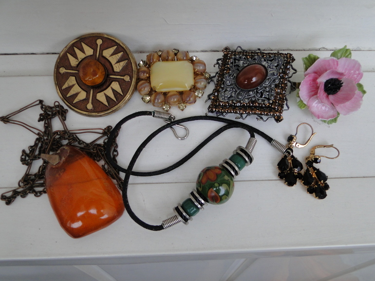 я в основном по украшениям))) из одежды то, что не выбросили, - не мой рост, размер совершенно (все толстенькие и низенькие были)украшения вот такие, всё ношу:
