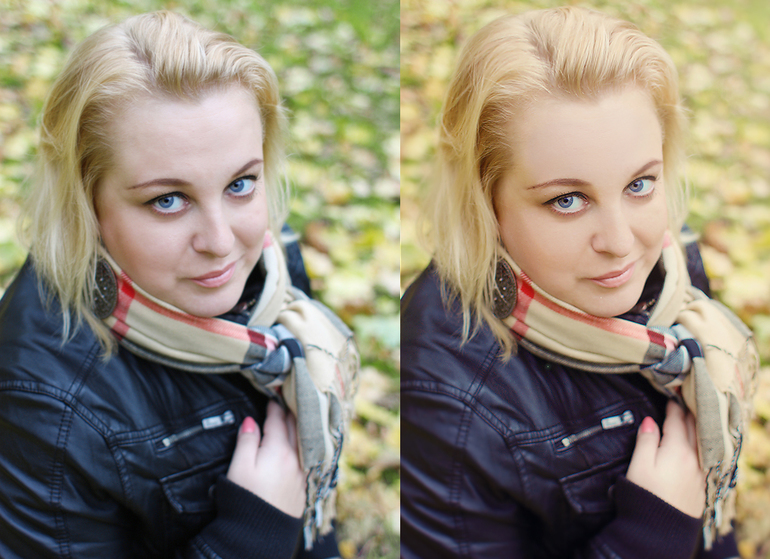 Это ж осень, сделайте фон желтее)) Способов море - кривые, выборочная коррекция цвета, баланс цветов.. На глаза обязательно резкости добавить.