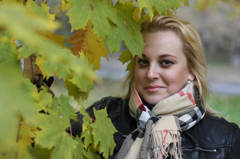 Всю голову уже сломала, но что-то не то...Не знаю, как выделить блондинку на желтой листве....