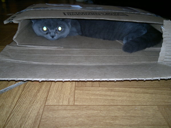 Камилла, это твое чудо? Кошаки прелестны! Если бы ни их туалет, завела нею несколько не смотря на шерсть, так они забавны! Мой британчик прожил с нами 10 лет, и любил тоже коробки и все бумажное :)