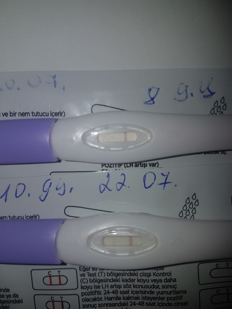 Короче сегодня 10дц..сделала тест вторая полоска еле видна ,так же как и в понедельник..Очень расстроилась..наверно пролет в этом месяце..или еще рано???