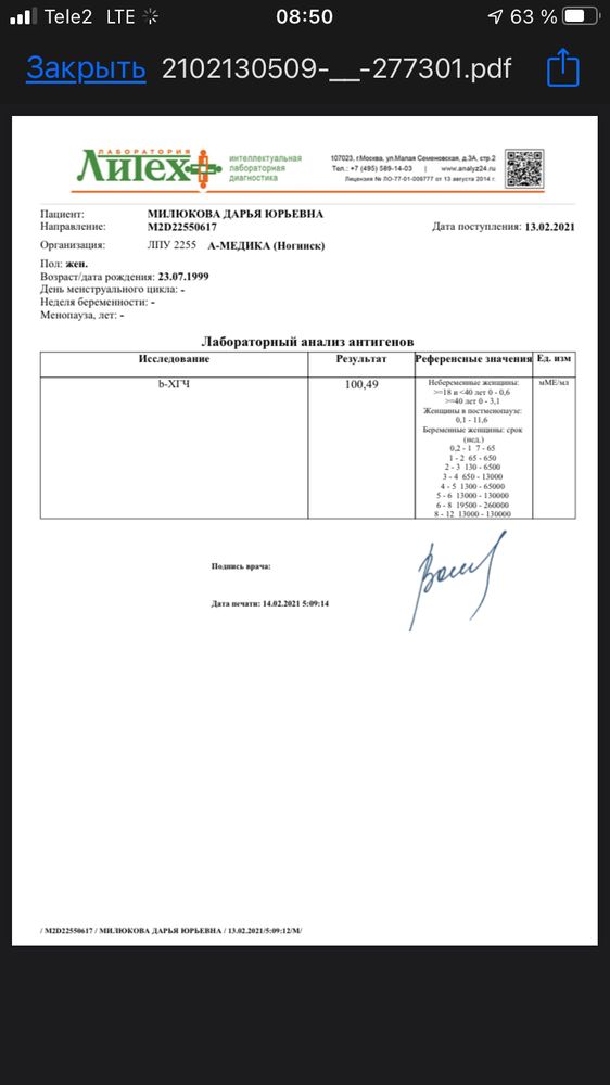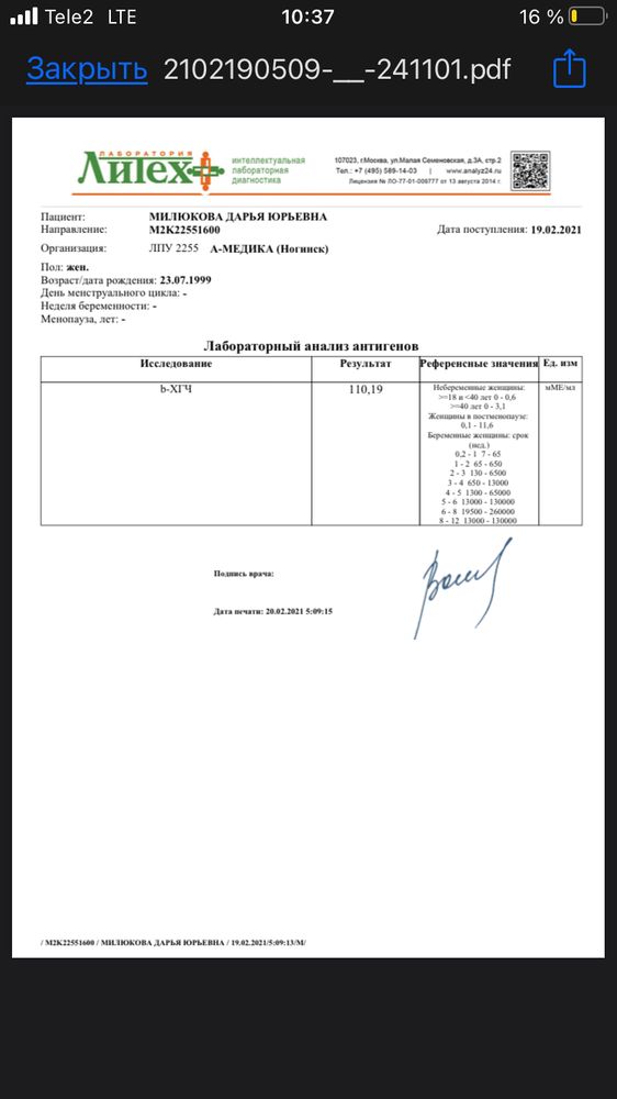 Доброе утро не знаю что делать с самого начала 8 февраля тест был ещё виден 13 стал ярче ходила на узи 13 числа не чего нет 16 числа электронный тест показал беременна 2-3 недели 19 пошла на повторное узи опять тоже самое не в матке не в трубах не чего нет сказали сдать хгч и повторить через 48 часов ну я сразу 19 и сдала а сегодня пришёл результат 110.19 получается за неделю он поднялся всего на 10 что это такое может быть врачи не чего не говорят завтра опять сдам хгч (
