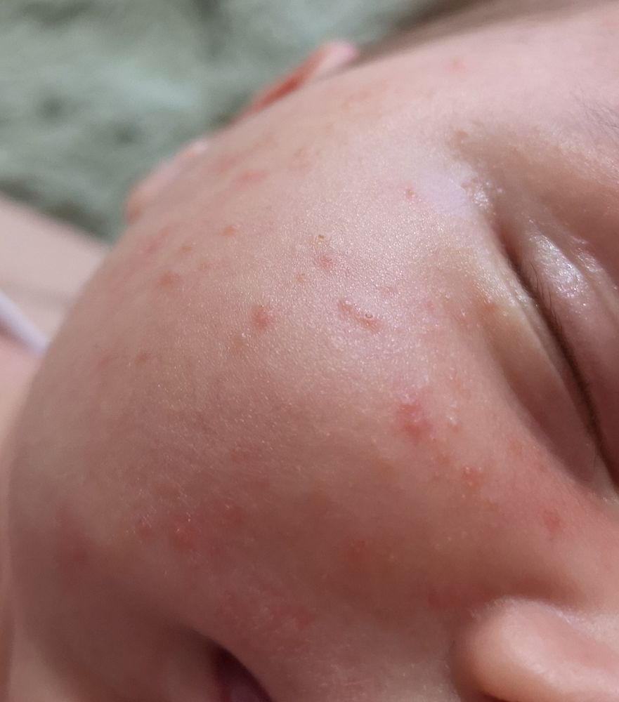 Девочки, кто сталкивался с такими высыпаниями, подскажите что это может быть. Стул нормальный, ребёнок спокойный, я редко и по немногу позволяю что-то не то себе. Как высыпало вообще на жёсткой диете и не проходит. Неонатолог сказал что это аллергия и что мне нужно сесть на диету,а ещё мазать цинковой мазью. Как по мне очень похоже на акне.