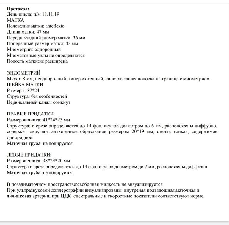 Итог ниже. Фолликул в правом яичнике (во время Б желтое тело было в левом) размером 18мм, эндометрий 8мм неоднородный. И это в 45 дц!!! Врач предложила попробовать, плюс проследить за БТ и прийти повторно на прием через пару дней. Ну посмотрим :)
