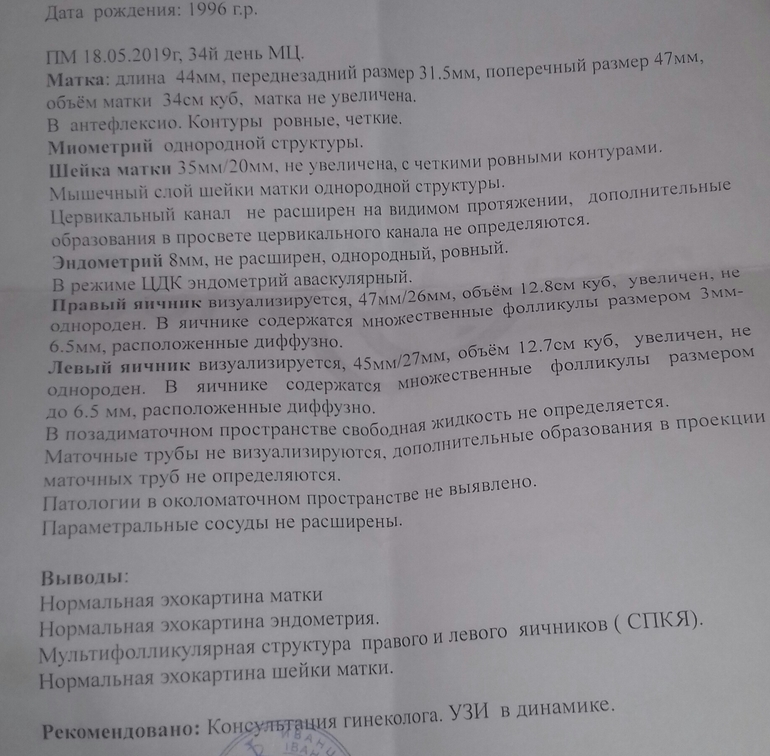 я сходила к ней. она тоже сделала узи и все -таки сказала , что это поликистоз и овуляция отсутствует