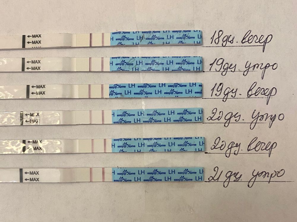 На фото видно, что на 20 ДЦ тестовая линия стала бледнеть. Ну, думаю, все случилось. Но, сделала тест сегодня утром (21 ДЦ) и тестовая опять сравнялась с контрольной. У кого-то было подобное? Начиталась всякого про повышенный ЛГ. Вот и думаю, идти проверять что-то, делать дальше тесты на О и ждать М ?🤷🏼♀️