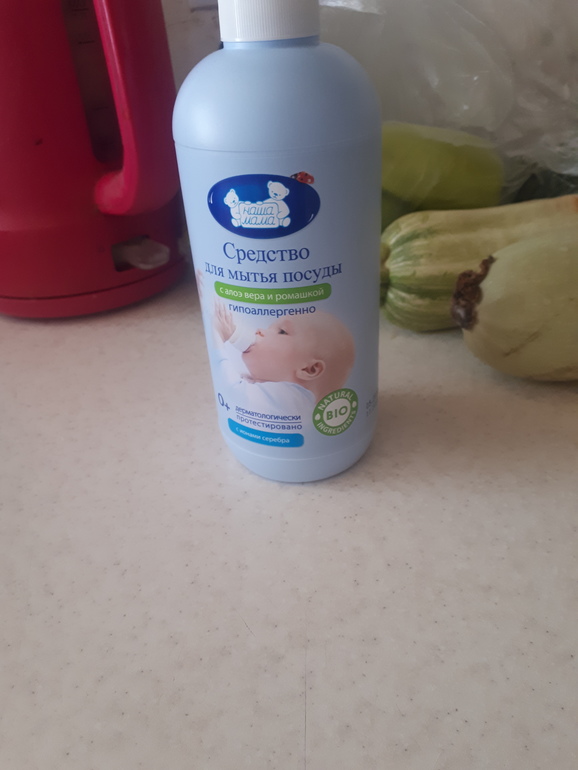 У меня средство Наша мама есть, когда мою руками посуду, им пользуюсь. Густое, не пахнет. Быстро смывается, не нужно 300 раз полоскать