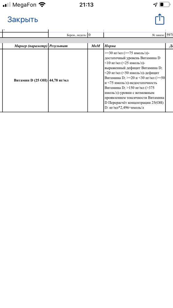 Елена 5 лет Девочки, это нормальный уровень? Ничего не понимаю в расшифровках этих. Посмотрите еще 20 записей на эту тему Отменить Ответить Анна От 30 до 100 норма. 20-30 недостаток Меньше 20 - дефицит. 25.09.2020 Ответить Елена Это результат ребёнка 25.09.2020 Ответить Женя Отличный уровень, мне эндокринолог сказала стремиться до 50, но после 30 это уже норма 25.09.2020 Ответить Елена Женя, это ребёнка анализ 25.09.2020 Ответить Женя В любом случае норма от 30 и для взрослых и для детей 25.09.2020 Ответить Julia Tim У Вас достаточный уровень витамина D. 25.09.2020 Ответить Maya А Вы в колонку "Норма" загляните. Там разгадка 😁 25.09.2020 Ответить Норма сахара у беременных? Детское термобелье и зима, запуталась... Чаты Беременных Выберите чат: Январята-2026 Февралята-2026 Мартята-2026 Апрелята-2026 Майчата-2026 Июнята-2026 Июлята-2026 Августята-2026