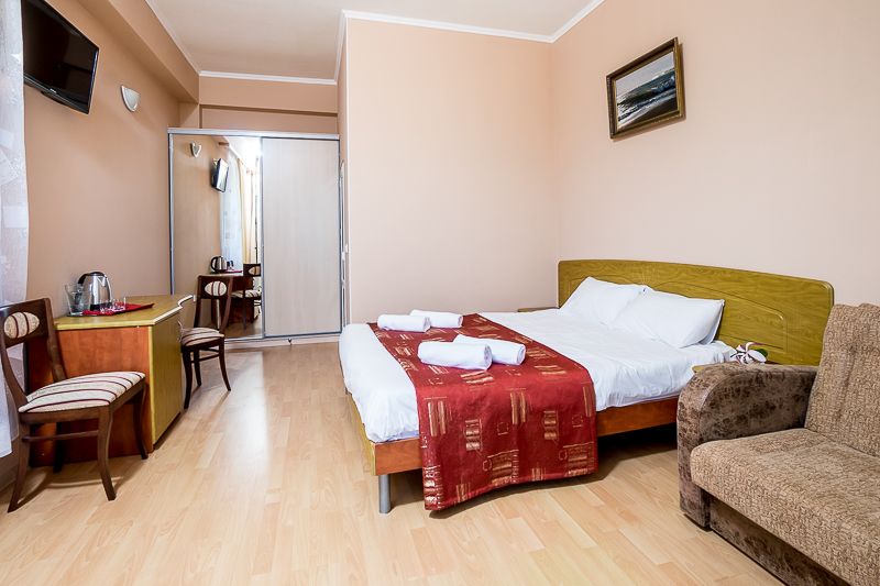 Бронирование 2024 года! Лазаревское. Сайт отеля https://maria-hotel.ru/ Семейный отель Мария расположен в самом тихом и экологически чистом районе Сочи и курортного поселка Лазаревское, на опушке реликтового леса. Мимо отеля нет никакого автомобильного трафика. Слышно только пение птиц, жужжание стрекоз и треск цикад. В нашем отеле Вы, наконец, узнаете, что такое настоящий "чистый воздух" и что такое "тишина". Мы тщательно продумали и с любовью приготовили для наших гостей: номера Полулюкс со всеми удобствами, бассейн с шезлонгами, несколько зон отдыха в уютном дворике и на смотровой площадке, кухня для самостоятельного приготовления, кафе-столовая и бар, детская комната с воспитателем, бесплатный трансфер на лучшие пляжи Лазаревского, в центр поселка и обратно в отель. Каждый вечер проводятся детские дискотеки. Отель регулярно посещают любимые детские персонажи: Барбоскины Роза и Дружок, Тролли Цветан и Розочка, Капитан Джек Воробей, клоун Кеша и многие другие. Дважды в неделю: анимация для взрослых, шоу-программы и дискотеки. Насладитесь теплым Черным морем, развлечениями, парками Лазаревского, восхитительной природой, величественными видами на море и горы и нашим гостеприимством. Цены очень демократичные: июнь 2800-3800 руб, июль и август 4400 руб, сентябрь 3400 руб в сутки на всю семью целиком за номер.