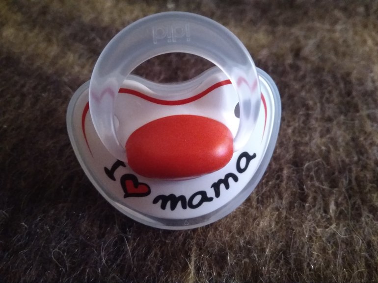 Мама моего мужа подарила нам эти пустышки на выписку. Сразу обратила внимание на классные надписи. Муж так вообще прям горд, когда дочка с пустышкой Я люблю папу.