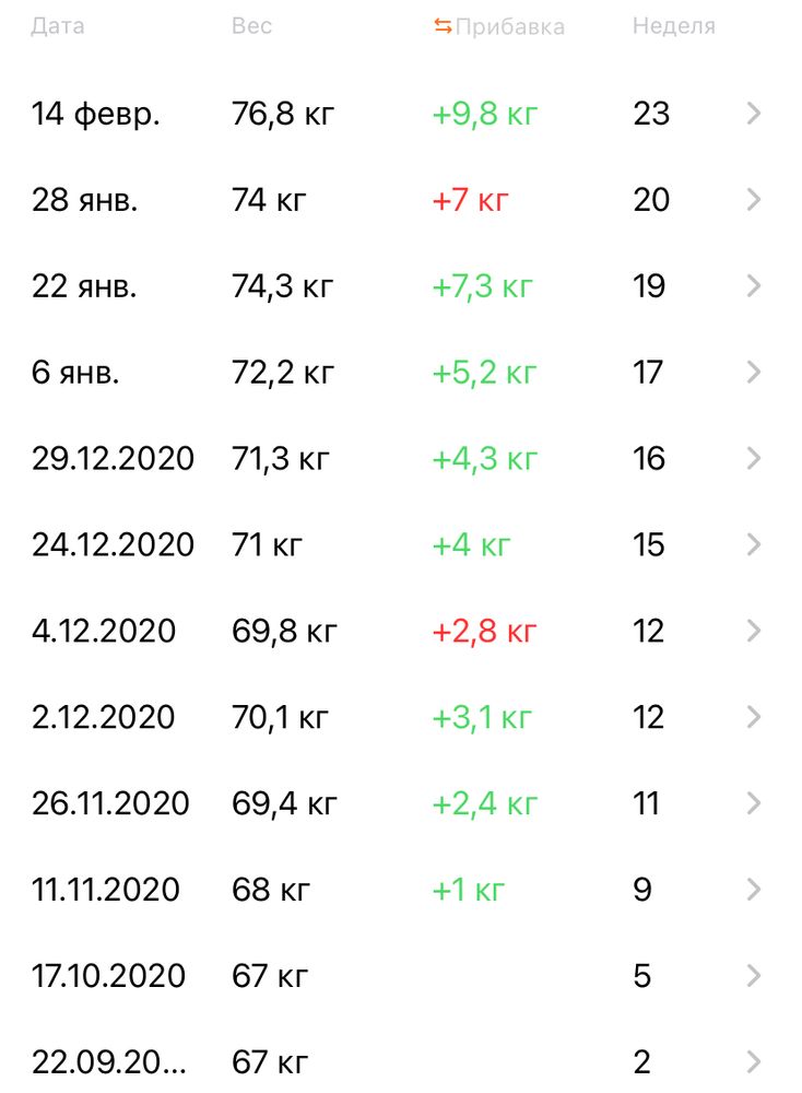 ведите план питания, все, что в рот положили записывайте, вот и найдете свои +10 кг