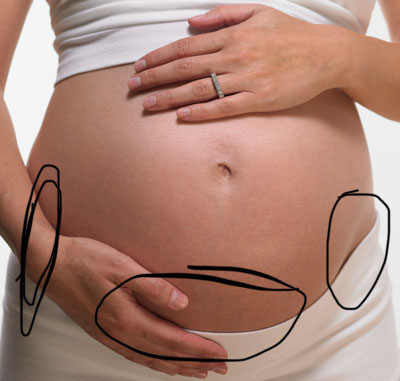 На фото отметила места, боли в основном то в правом , то в левом боку как будто на косточке таза и сегодня утром на прогулке с собакой начало снизу побаливать, пришли домой , села и все рукой сняло.