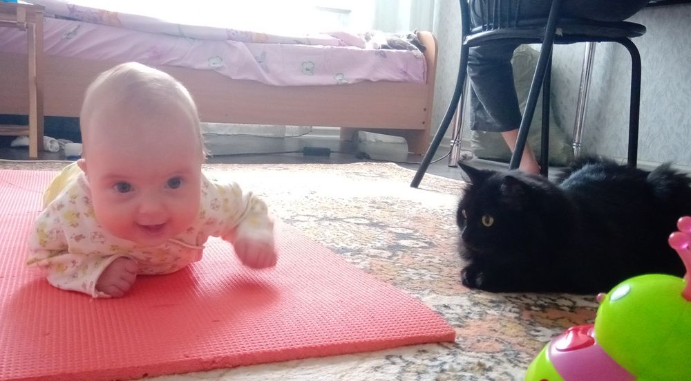 Нам пол пока не очень зашёл 🤷🏻♀️ Не распробовало ещё. На кота вообще внимания не обращает, зато старший брат столько восторга вызывает😁 аж визжит от радости, когда он к ней подходит😁
