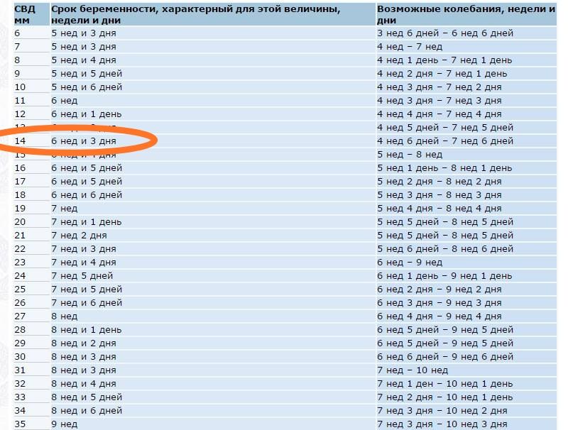 ПЯ 14 мм (на 7 недель),КТР 3 мм (на 6 недель), ЖМ 4 мм, СБ+