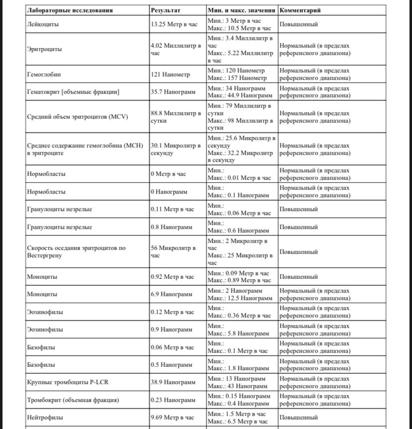 сдавала кровь , СОЭ 56, и ещё некоторые показатели повышены