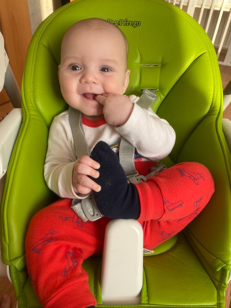 Ровно с 5 месяцев начали вводить прикорм и сейчас из овощей сынок кушает кабачок, цветную капусту, брокколи, яблочко, а каши гречневую и рисовую. Как я и думала, наш сын весь в папу - всеядный😂