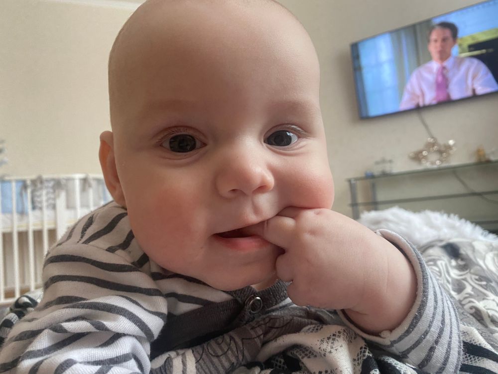 28 декабря наконец-то у нас прорезался первый зубик! Внешне конечно было плохо видно, пальцем его нащупала, так бы и не узнали сразу (царапался, остренький😅). Дёсна чешет в основном пальцами, почему-то прорезыватели и грызунки ему не особо нравятся🤷🏻♀️