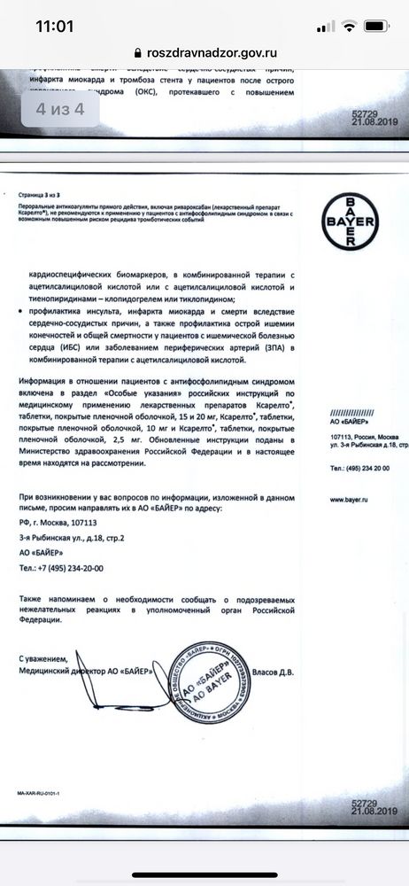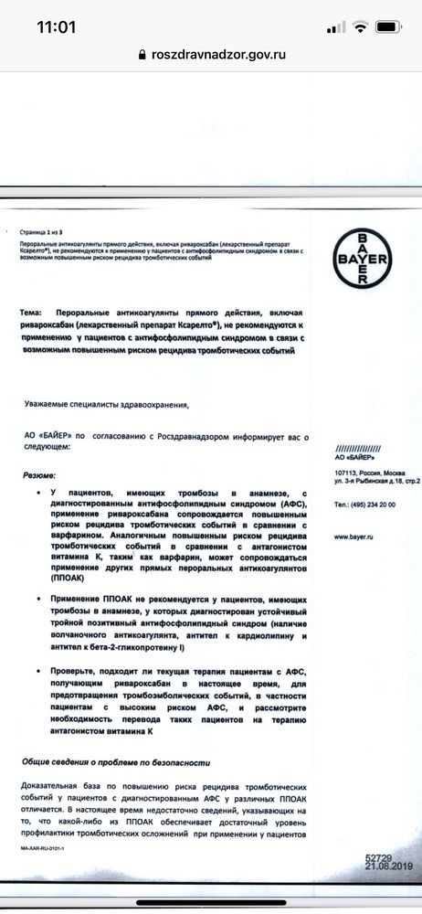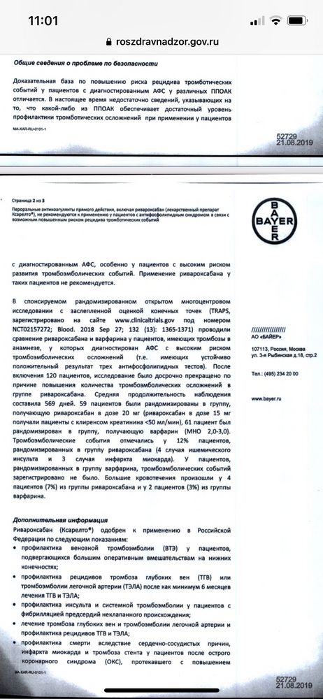 Я боялась, сообщила гематологу, но он ответил только спустя пару дней. Назначил Ксарелто 15 параллельно с ОК. Но я не понимаю, Ксарелто разве обезопасит в этой ситуации? Он же вроде гепарин прямого действия.
