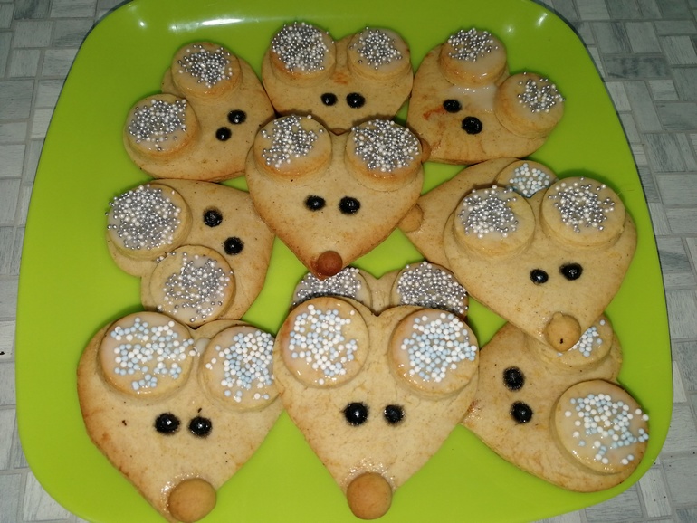 Ушки смазать сгущенкой и украсить кондитерскими посыпками:
