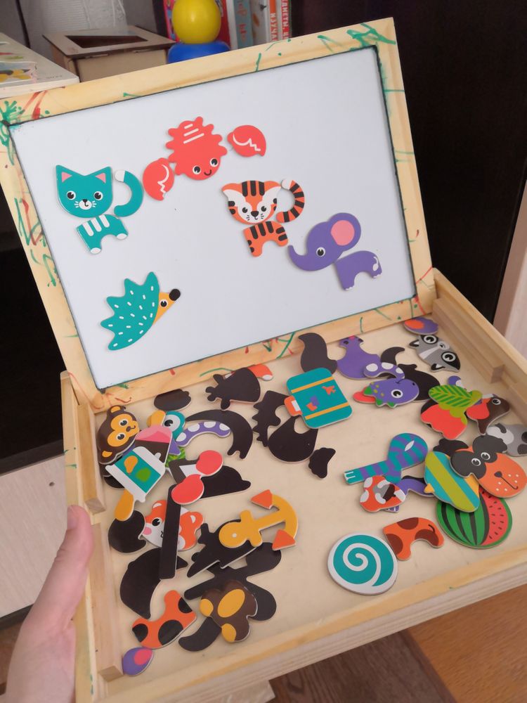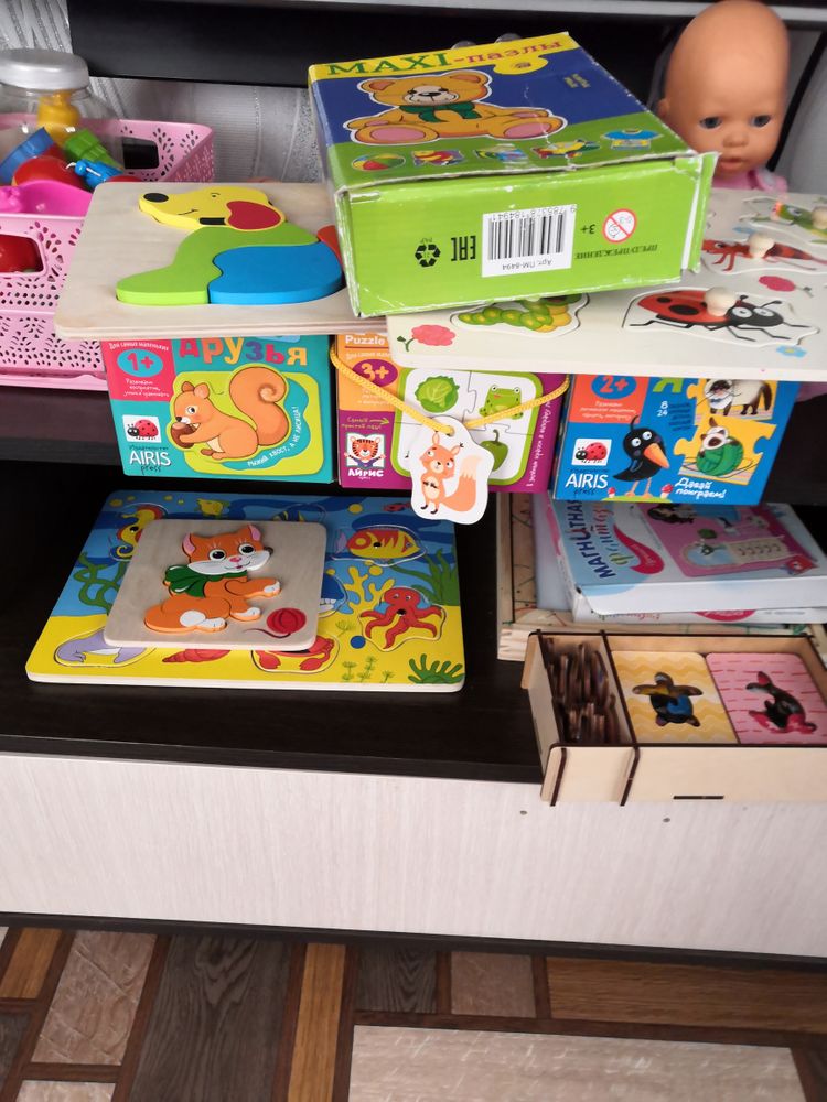 Конструктором ещё строит, красками сама рисует например пока я готовлю дочка рядом за столом рисует акварелью, периодически меняю ей листы. Деревянные пазлы фирмы алатойс и другие может пособирать, набор врача тоже периодически достаёт