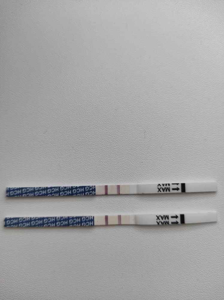 Делала на 9 ДПО, на 11 ДПО, в первый день задержки (ХГЧ 1694), не сравнялись. Потом просто так в 6 недель, полоска всё-равно была бледнее контрольной, тесты же не предназначены для мониторинга, они просто должны отвечать на вопрос есть беременность или нет