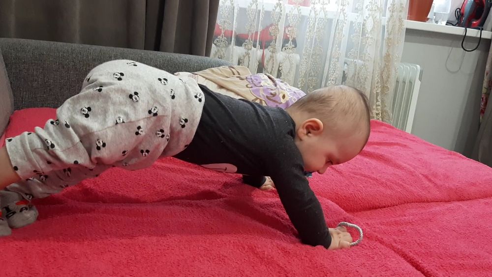 Какой хороший малыш, я читала все ваши вопросы про размытие и думаю, вы зря себя накручиваете, к тому же вам все врачи говорят, что все хорошо и вы развиваетесь в своём темпе. Посмотрите, какой он сильный у вас, и ножки задирает и планку делает. Отстаньте вы уже от него) все у вас замечательно