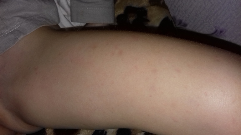 Списалась с врачем сказала похоже на аллергию, утром встала ничего не было, одели колготки ,спустя 2 часа опять появляются пятнышки ,сняли колготки ,одели штаники легкие ,посмотрим как будет