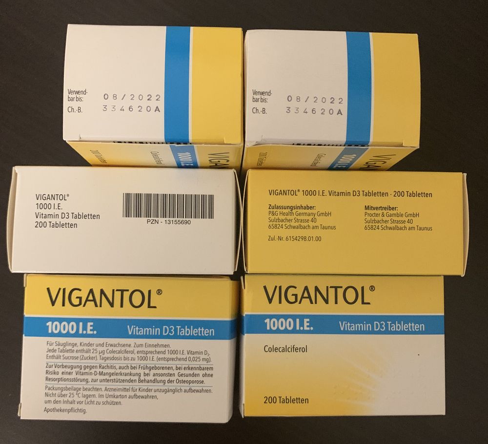 Добрый день. В наличии есть 3 упаковки Вигантола из Германии.