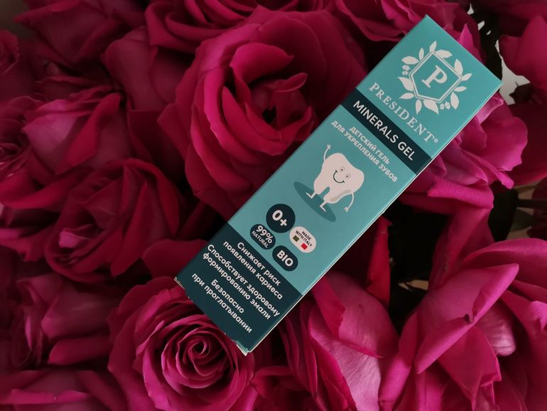 Детский bio-гель для укрепления зубов Minerals Gel PRESIDENT тоже очень интересная вещь. Его нужно использовать после чистки зубов: нанести зубы на 10 минут и потом смыть. На пачке написано BIO и состав 99% натурален. Главное, что ребенок может его проглотить и ничего не будет,т.к он натуральный. Гель нацелен защитить зубы от кариеса и сделать их крепче.