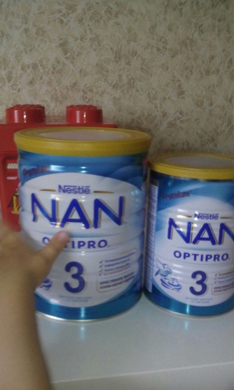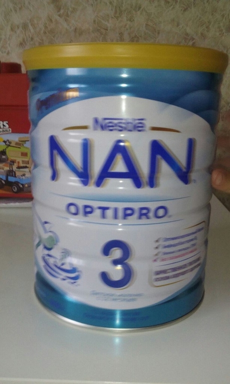 Затем нам прислали для пробы огромную банку смеси, разумеется мы уже выросли и употребляли NAN 3. Теперь мы покупаем только большие банки, очень выгодно выходит.