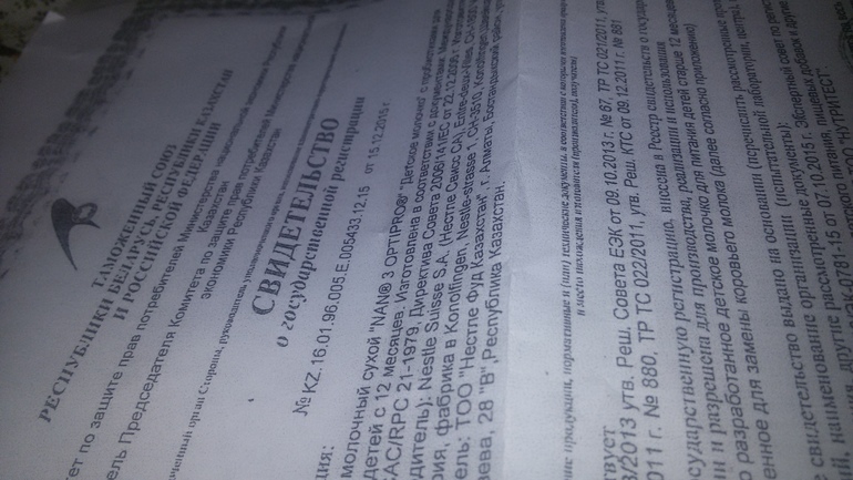 Хотелось бы отметить оперативную и вежливую курьерскую доставку. Упаковано все было очень надежно. Внутри коробки было вложено Свидетельство о государственной регистрации продукта. Я и не ожидала, что банка будет такой большой, 800 гр!! Этого нам хватит на очень длительный срок (смесь сын кушает только ранним утром).