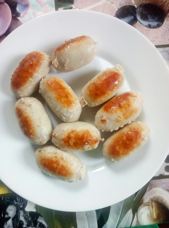 Котлеты и колбаски на первый взгляд выглядели свежими. По размерам не сильно большие, но на семью из трёх человек с гарниром очень даже питательно. На вкус котлеты получаются суховатыми, делали на гриле. Специи в норме. А вот в сосисках не хватает перца и соли, на мой взгляд. Сосиски получились сочные.