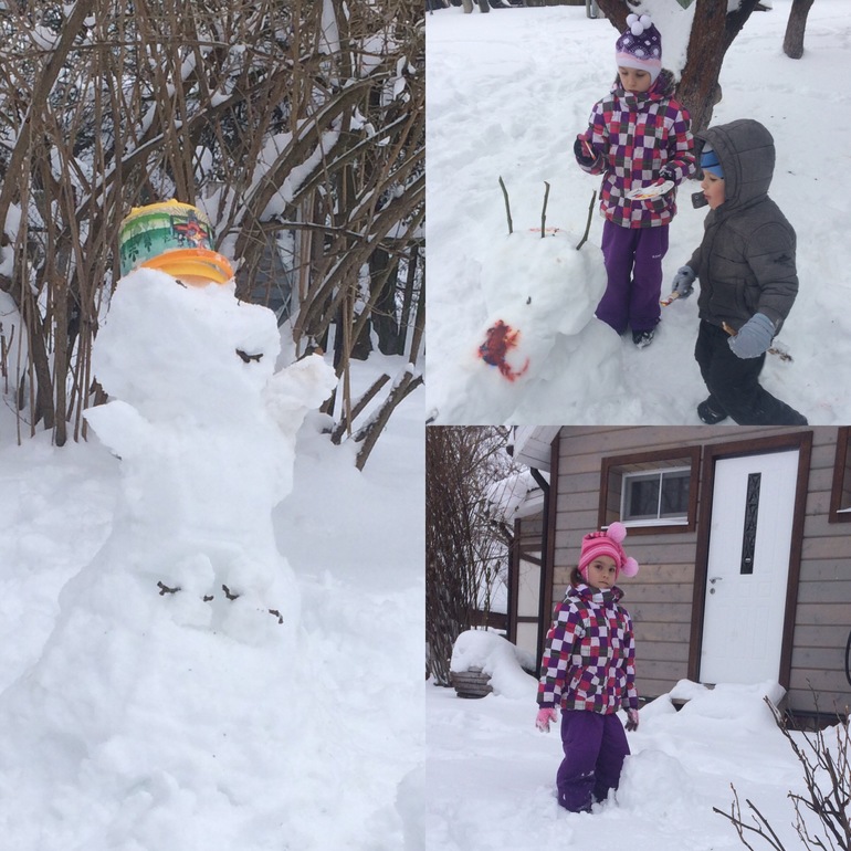 Сегодня вот тепло и снег лепился - гуляли полдня гуляли, лепили снеговиков, люблю дом: