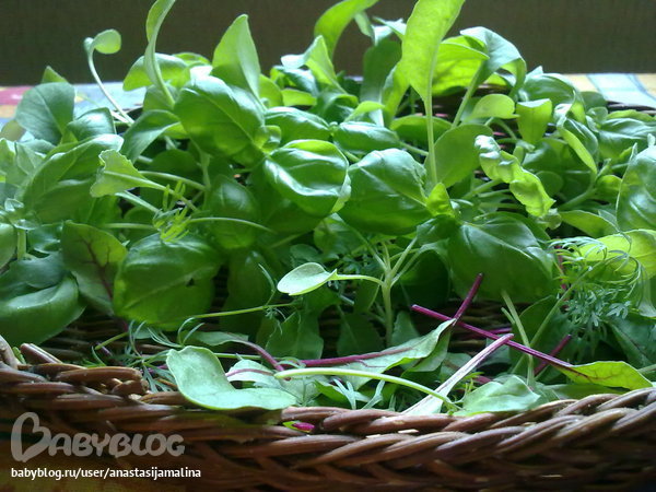 Это конечно громко сказано) Сегодня срезала на салат немного зеленых листочков растущих на подоконнике!