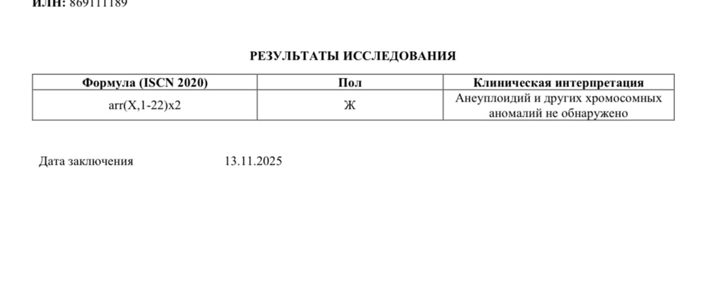 Получили генетику - анеуплоидий и других хромосомных аномалий не обнаружено.