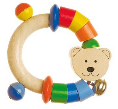 Прорезыватель-погремушка Мишка с бубенчиком (Heimess) - наша любимая игрушка. Деревянная. Ребенок играет ей с самых первых дней, как только его стали интересовать игрушки. Пока ничего не отвалилось))