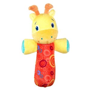 Развивающая игрушка Жираф (Bright Starts) - заинтересовал малыша сравнительно недавно, так как только сейчас стал удобен для захвата детской ручкой. Жираф пищит при сжимании. Я его обычно использую, когда рассказываю ребенку «Идет коза рогатая…», которая его потом бодает)))