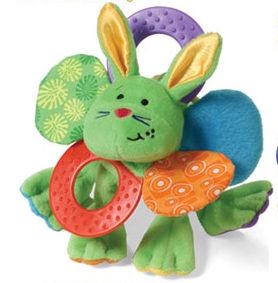 Прорезыватель с зеркальцем Зайчонок (Infantino) - этот зайчик-мутант (как ласково называет его мой муж) нравился сынуле с очень раннего возраста. Все лепестки очень интересно потрогать и пошуршать ими. Еще зайчик гремит. Зайчик стал первой игрушкой, к которой ребенок начал тянуть ручонки и пытаться попасть в цель.