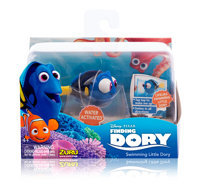 РобоРыбки «В поисках Дори» - главные герои нового мультфильма студии Disney PIXAR «В поисках Дори» (продолжение популярного мультфильма «В поисках Немо»), а так же игровые наборы с аквариумами и треками. Инновационная высокотехнологичная игрушка. Активируется от соприкосновения с водой и плавает, как живая! Удачное сочетание яркого, реалистичного дизайна с интегрированной микросхемой, позволяет RoboFish довольно точно имитировать движения и повадки настоящей рыбы. Мягкий силиконовый хвост и электромагнитный мотор robofish помогают ей двигаться в 5 различных направлениях. При погружении в воду, рыбка робот начинает плавать, опускаясь ко дну и поднимаясь к поверхности, ускоряя и замедляя движение, совсем как настоящая!