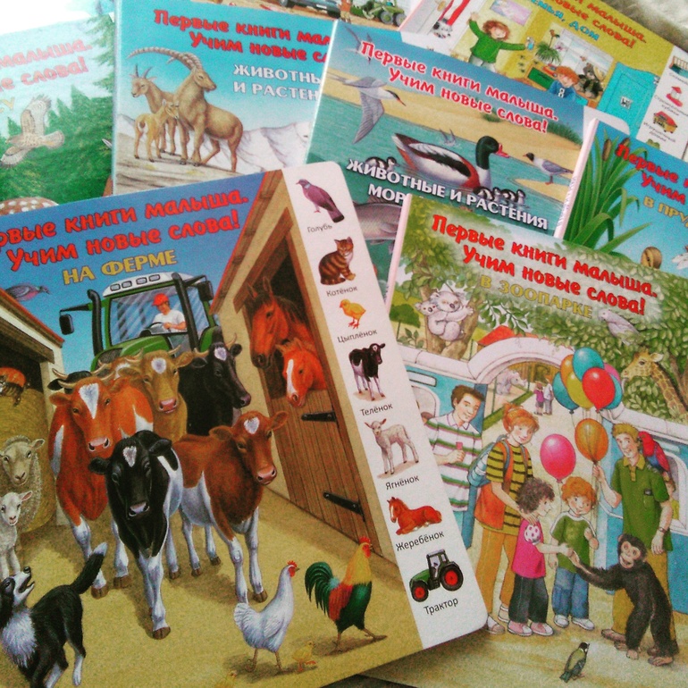 Устраиваем занятия посвященные одной теме. Знакомимся с предметами в реально жизни, если нет такой возможности, то находим эти предметы на картинках в книгах. Используем книги с сюжетными картинками. Нам нравятся книги их серии Первые книги малыша Учим новые слова! I Лабиринт I My-shop.ru