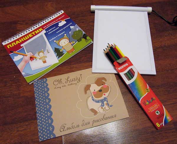 И, конечно же, укомплектовали планшетик альбомом для рисования и набором карандашей. Просто для того, чтобы можно было начать рисовать сразу же как только вы распакуете коробку.