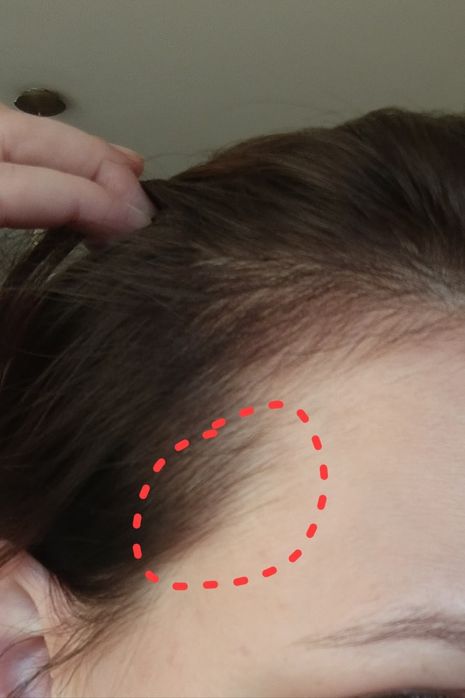 Ещё два месяца назад я думала, как сбривать (или не сбривать) "бакенбарды" на висках (которые отмечены пунктирной линие