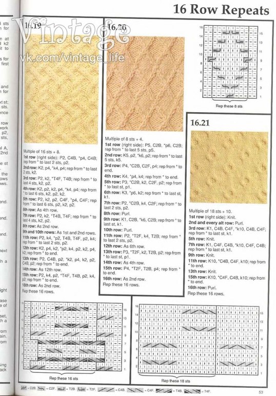 Маленькие ромбы (узор на рукавах) Использовать схему №16.20 , только вязать один раппорт , обрамляя его с обеих сторон одной лиц. п. (итого 10 п.) Все остальные п. внутри ромбов изнаночные.