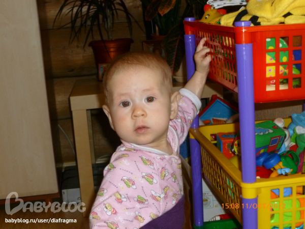 сейчас конечно времени крайне не хватает,постоянно слежу,чтобы Ариша не упала,т.к.везде встает и отпускается,падает.правда стала приземляться мягко, на попу.